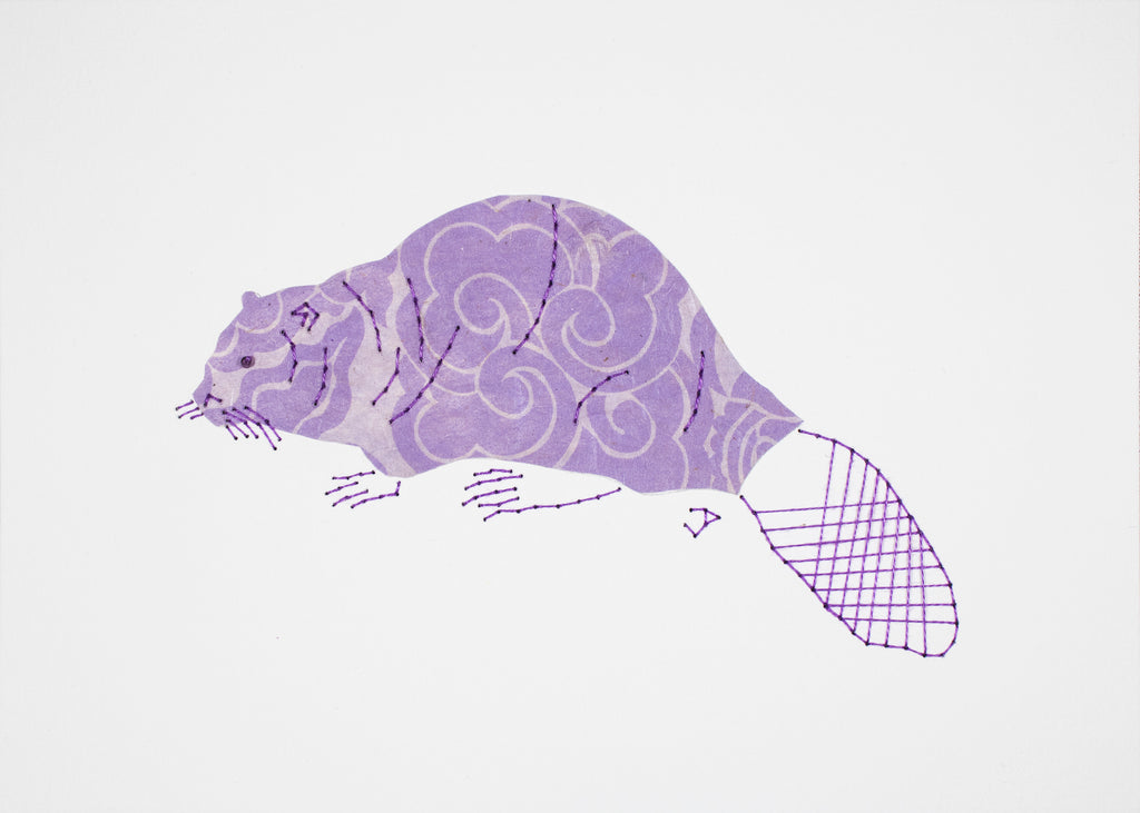 This bewhiskered beaver is made from lilac Nepalese paper and features a gold glass bead eye. It is based on a 1774 illustration of Castor fiber (European beaver) from ‘Die Såugthiere in Abbildungen Nach Der Natur’.