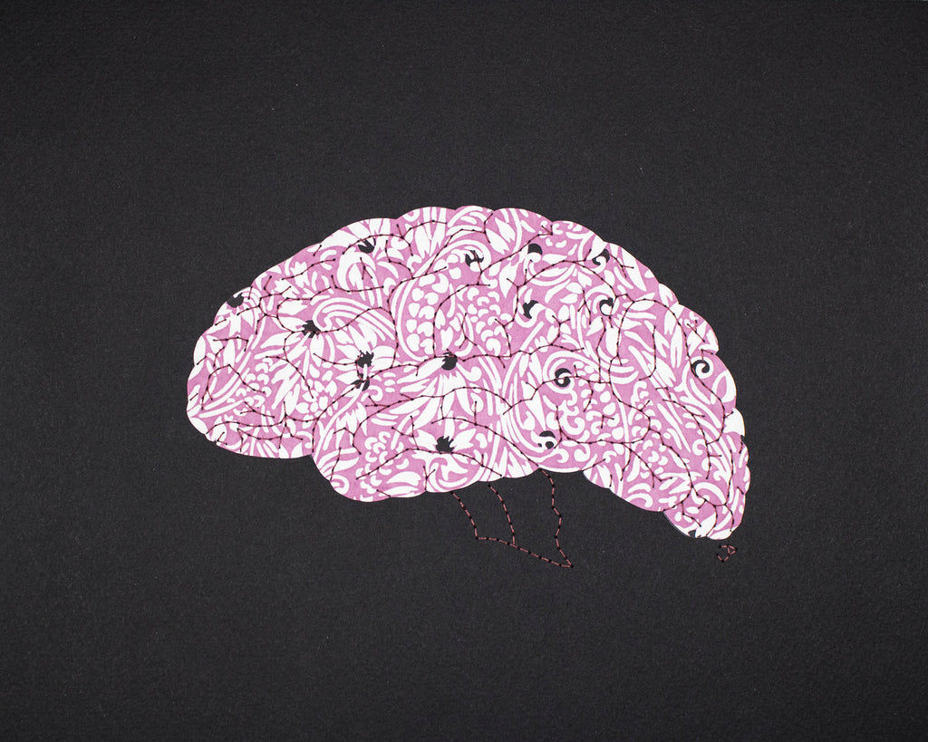The brain is 6 inches tall, stitched by hand on 8x10 inch 100% cotton watercolour paper, which means that it will pop right into any commercial frame in that size, and be ready to hang on your wall.