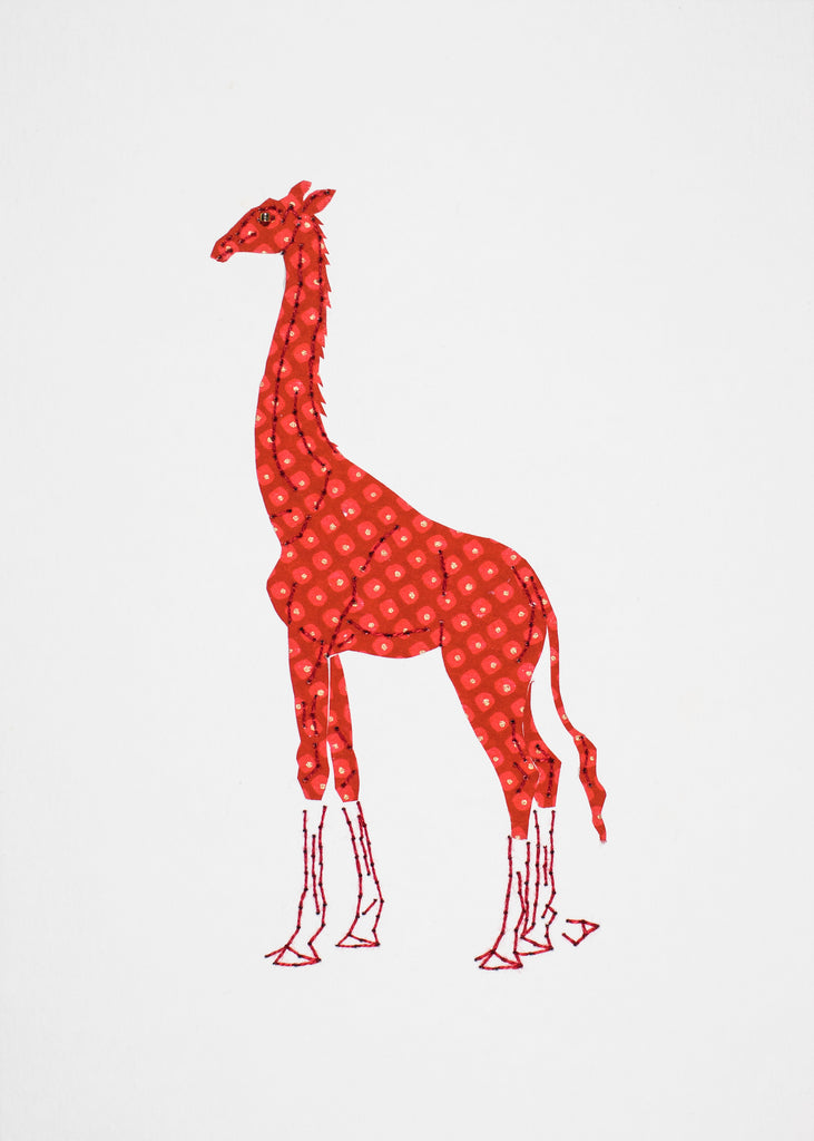 The giraffe is 4.75 inches tall, stitched by hand on 5x7 inch 100% cotton watercolour paper, which means that it will pop right into any commercial frame in that size, and be ready to hang on your wall.