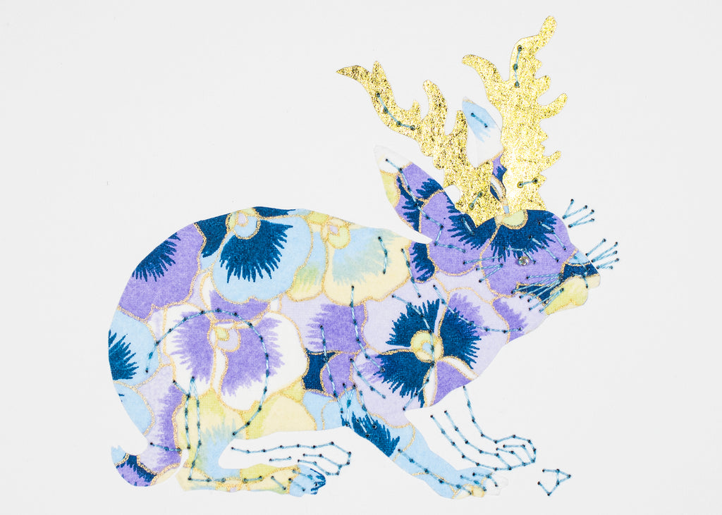 One of the first things I ever embroidered was an image of two ‘horned rabbits’ from Johann Daniel Meyer’s 1752 Representations of all kinds of animals with their skeletons. It was the illustration I came back to when I decided to stitch some paper jackalopes.
