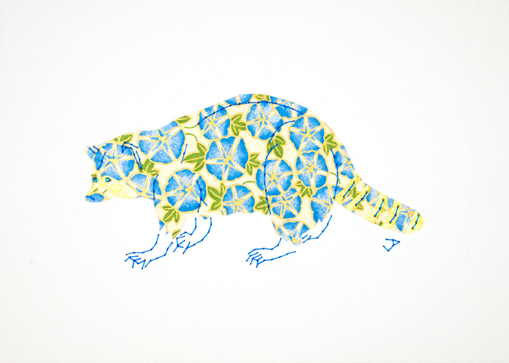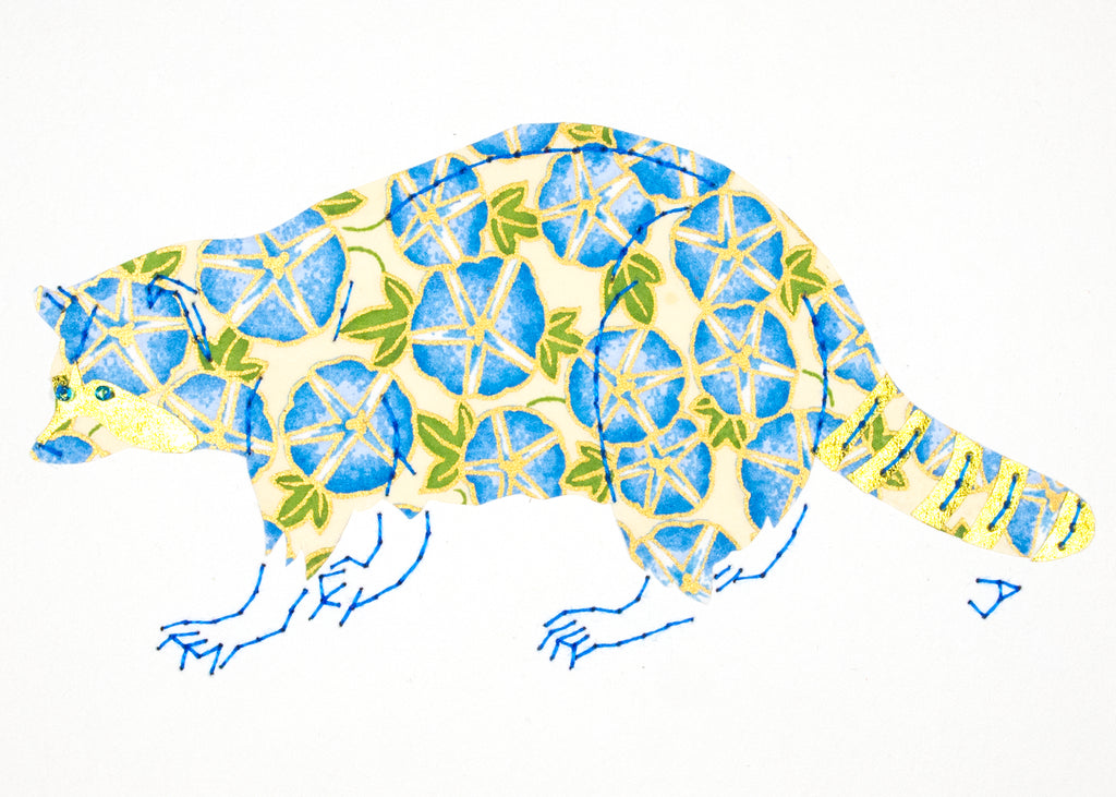 The raccoon is 4.75 inches wide, stitched by hand on 5x7 inch 100% cotton watercolour paper, which means that it will pop right into any commercial frame in that size, and be ready to hang on your wall.