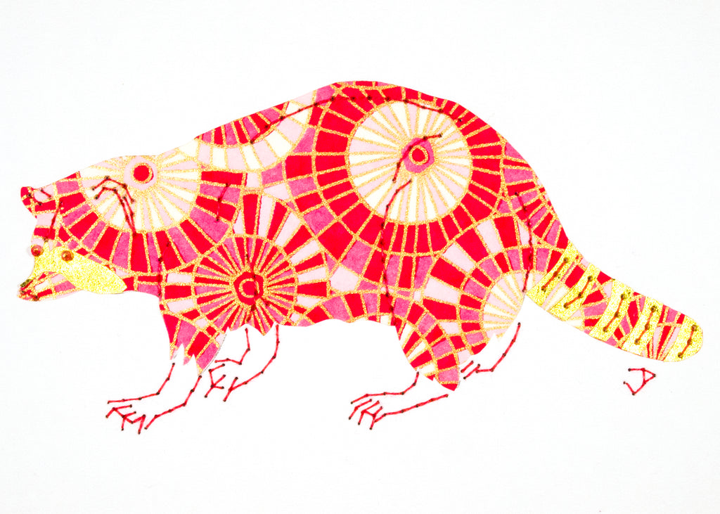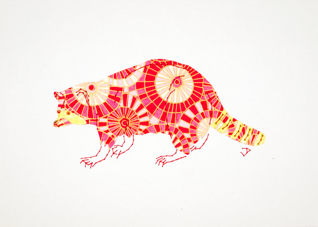 The raccoon is 4.75 inches wide, stitched by hand on 5x7 inch 100% cotton watercolour paper, which means that it will pop right into any commercial frame in that size, and be ready to hang on your wall.