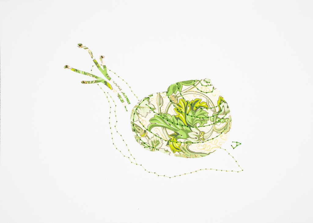 The snail is 4 inches wide, stitched by hand on 5x7 inch 100% cotton watercolour paper, which means that it will pop right into any commercial frame in that size, and be ready to hang on your wall.