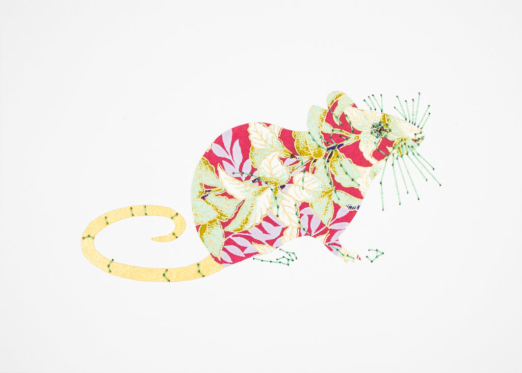 The mouse is 4.75 inches across, stitched by hand on 5x7 inch 100% cotton watercolour paper, which means that it will pop right into any commercial frame in that size, and be ready to hang on your wall.