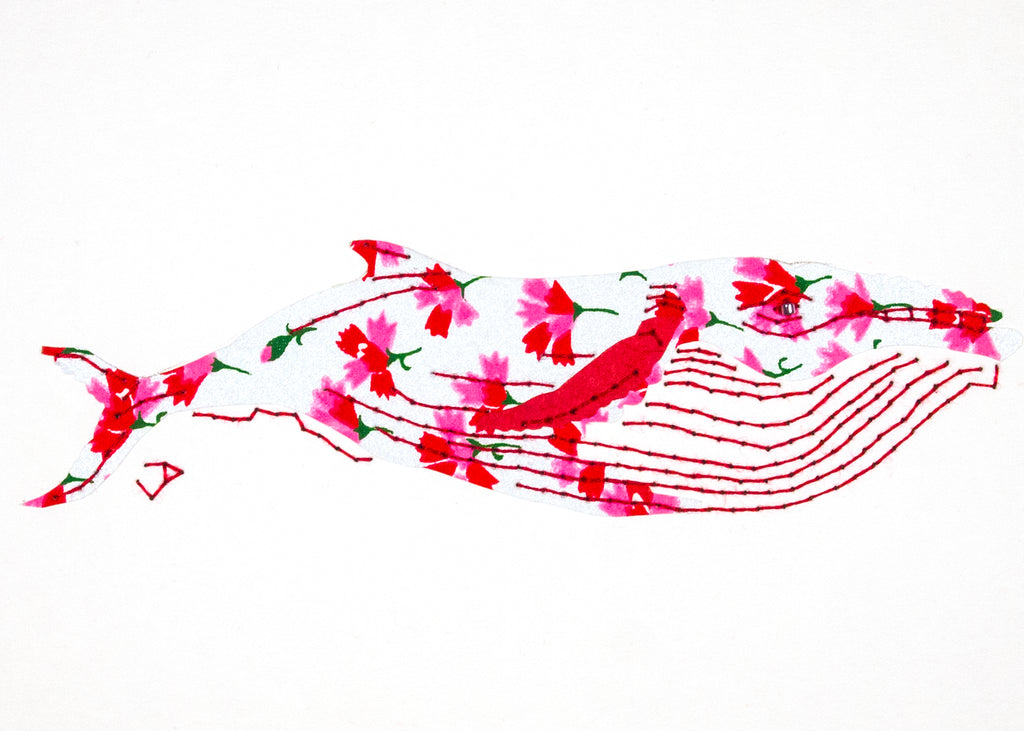 The whale is 4.75 inches wide, stitched by hand on 5x7 inch 100% cotton watercolour paper, which means that it will pop right into any commercial frame in that size, and be ready to hang on your wall.