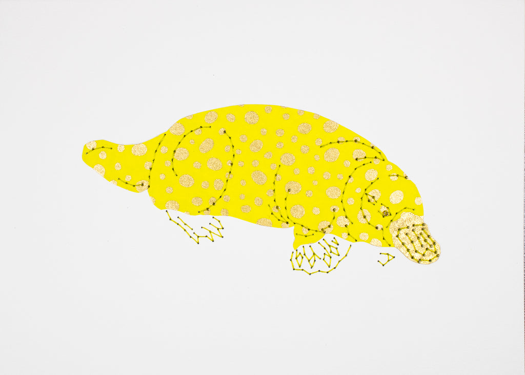 The platypus is 4.75 inches wide, stitched by hand on 5x7 inch 100% cotton watercolour paper, which means that it will pop right into any commercial frame in that size, and be ready to hang on your wall.