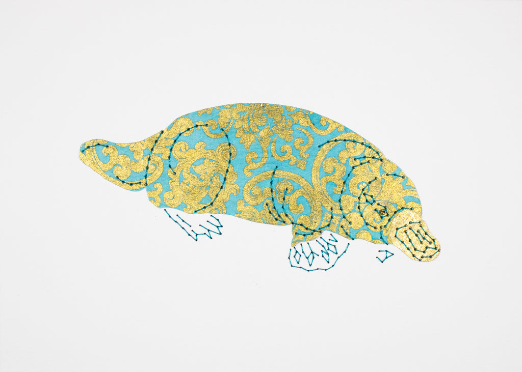 The platypus is 4.75 inches wide, stitched by hand on 5x7 inch 100% cotton watercolour paper, which means that it will pop right into any commercial frame in that size, and be ready to hang on your wall.