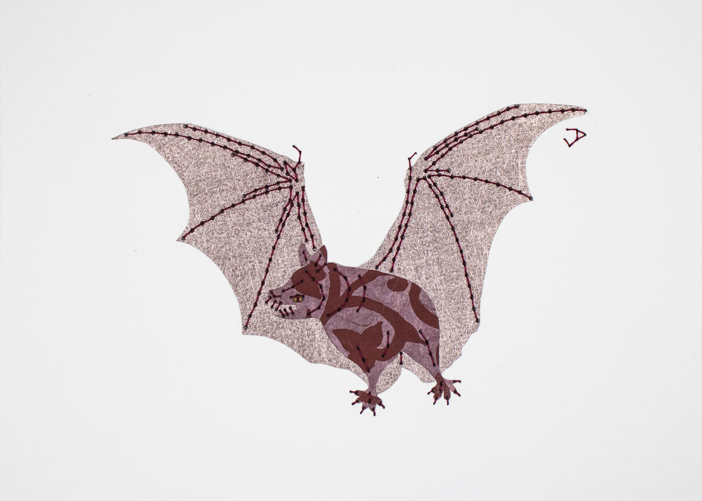 The bat is 4.75 inches wide, stitched by hand on 5x7 inch 100% cotton watercolour paper, which means that it will pop right into any commercial frame in that size, and be ready to hang on your wall.